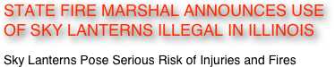 Joining the Illinois Fire Safety Alliance in support of the Illinois State Marshal’s efforts were the Illinois Fire Chiefs Association, the Illinois Fire Inspectors Association, the IL Firefighters Association, the Associated Firefighters of Illinois and the Illinois Association of Fire Protection Districts.